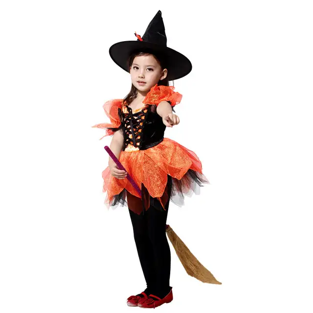 R8468 14 De Descontom Xl Disfraces Meninas Trajes Da Bruxa De Halloween Crianças Cosplay Feiticeira Crianças Dia De Ação De Graças Abóbora Saia