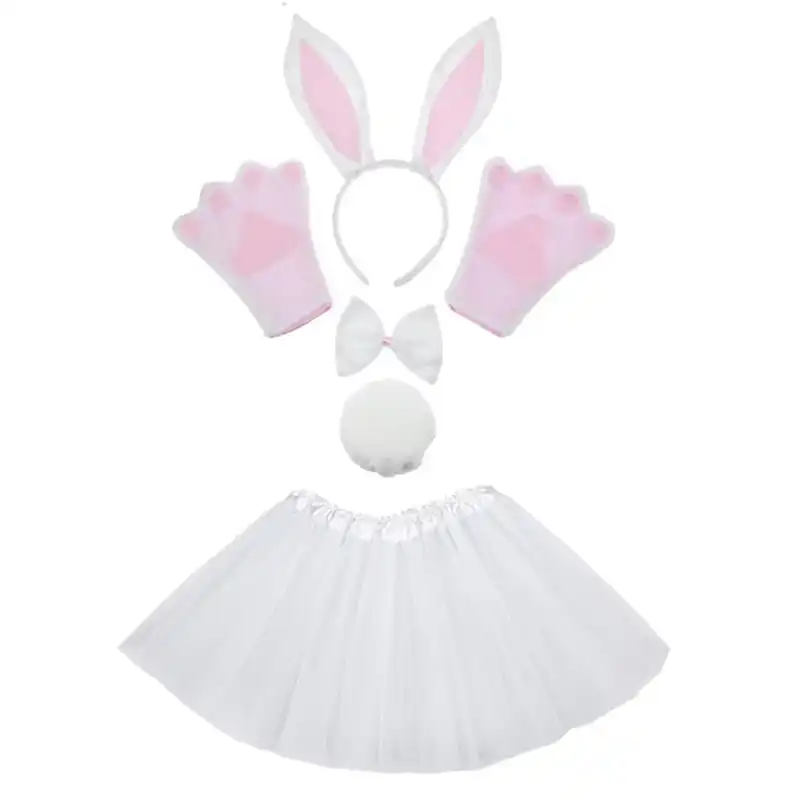 Diadema Larga De Orejas De Conejo Pajarita Cola Guantes De Patas Falda Tutú Niños Disfraz Personificación Para Adultos Conjunto Decoración Para