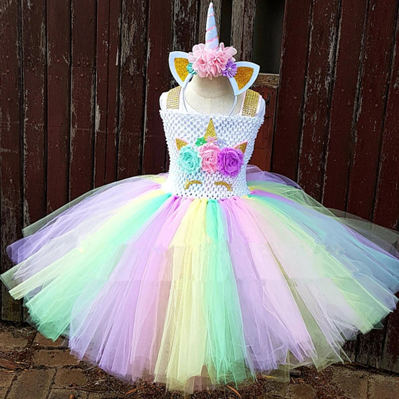 Vestido Unicornio Para Niña Y Accesorios Inspirado En La