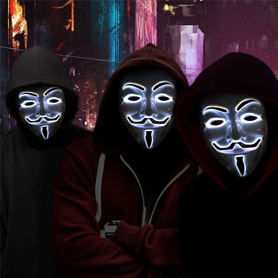 24458 20 De Descuento50 Piezas De Máscara Led De Halloween Máscaras De Hacker Decorativas Cosplay Disfraz Vendetta Guy Fawkes Luz Para Fiesta