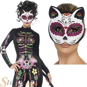 Detalles De Mujer Día De Los Muertos Azúcar Calavera De Gato Disfraz Halloween Máscara