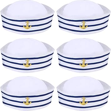 Syhood Sombreros De Azul Con Blanca Gorro Marino Marinero Para Accesorio De Vestuario Fiesta De Disfraces 6 Paquetes