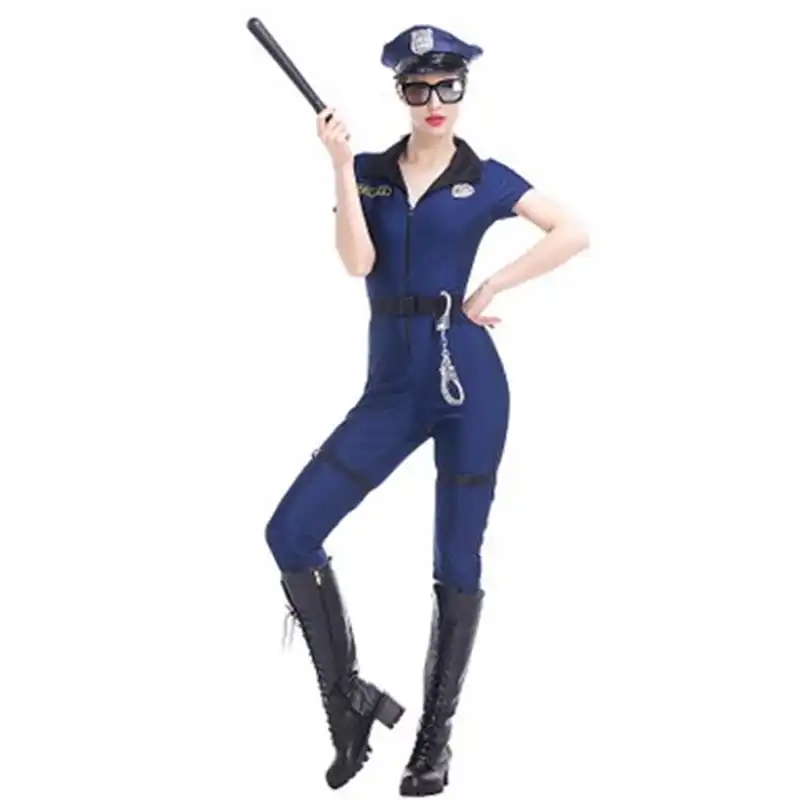 Women Halloween Policewoman Uniforms Costumes Female Swat Police Jumpsuit Cosplay Carnival Purim Christmas Nightclub Party Dress