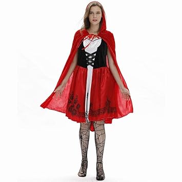Lalaareal Disfraz Halloween Caperucita Roja Mujer Cosplay Carnaval Navidad Fiesta Con Capa