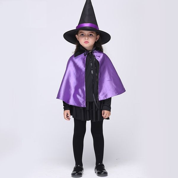 Compre Disfraces De Halloween Niñas Capa Púrpura Y Vestido De Bruja Traje De Vestir Y Sombrero Cap Party Cosplay Ropa Para Niños Ropa De Rendimiento A