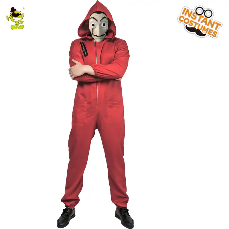 Hombre Dali La Casa Papel Disfraz Juego De Rol Máscara Traje Rojo Payaso Cosplay Halloween Cosplay Película Rojo Mono