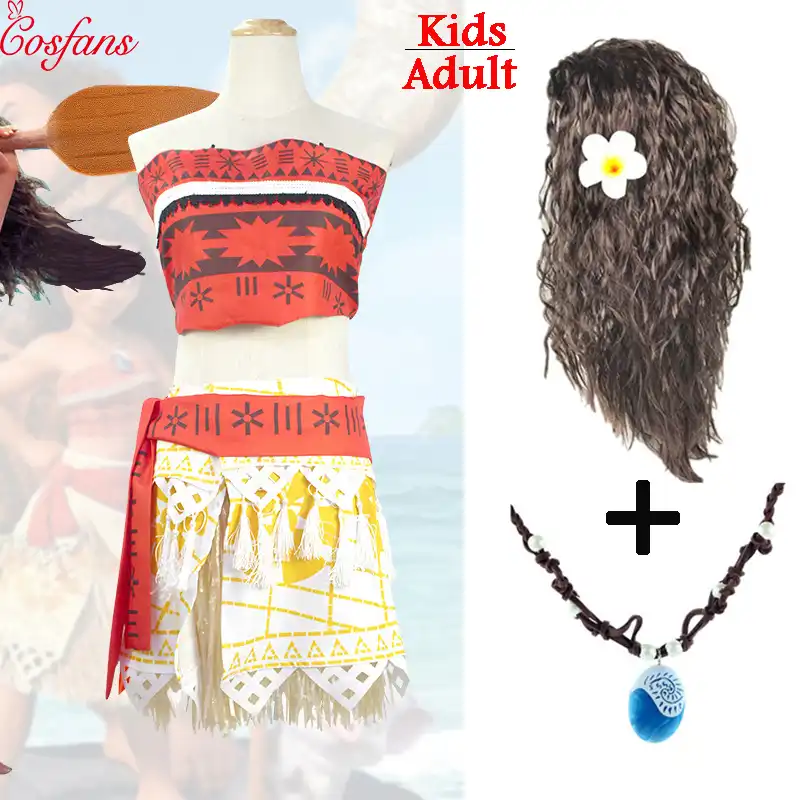 8 Piezas Adultos Niños Princesa Vaiana Moana Disfraces Vestidos Con Collar Peluca Mujeres Niñas Halloween Fiesta Moana Disfraces Cosplay