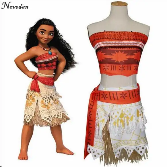R 2871 2017 Crianças Meninas Mulheres Filme Vaiana Moana Princesa Vestido Cosplay Traje Da Princesa Traje Festa De Aniversário Saia Em De No