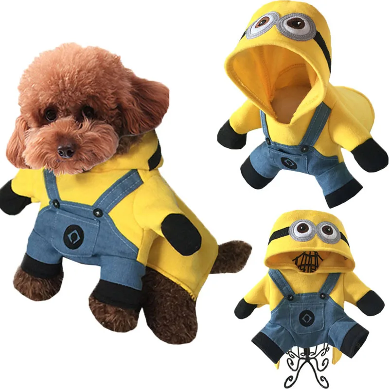 1083 Navidad Divertido Minions Perro Ropa Halloween Mascota Traje Dibujos Animados Cachorro Gato Abrigo Chaqueta Despicable Me 2 Suave Sudadera De