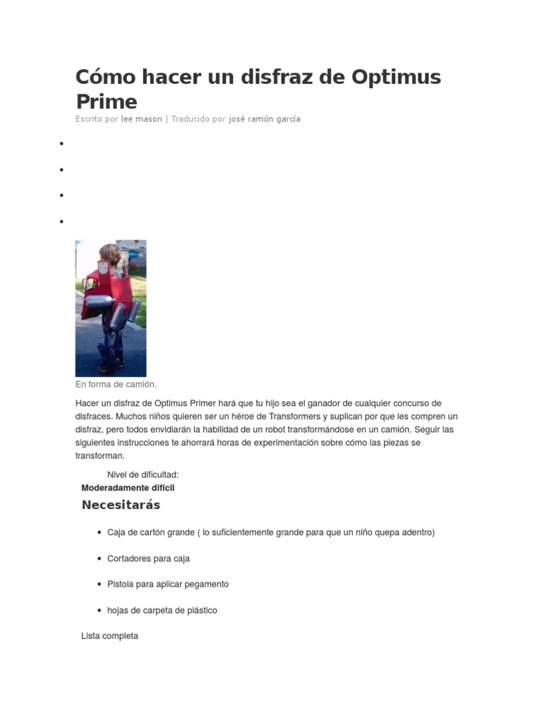 Cómo Hacer Un Disfraz De Optimus Prime Ocio Deportes