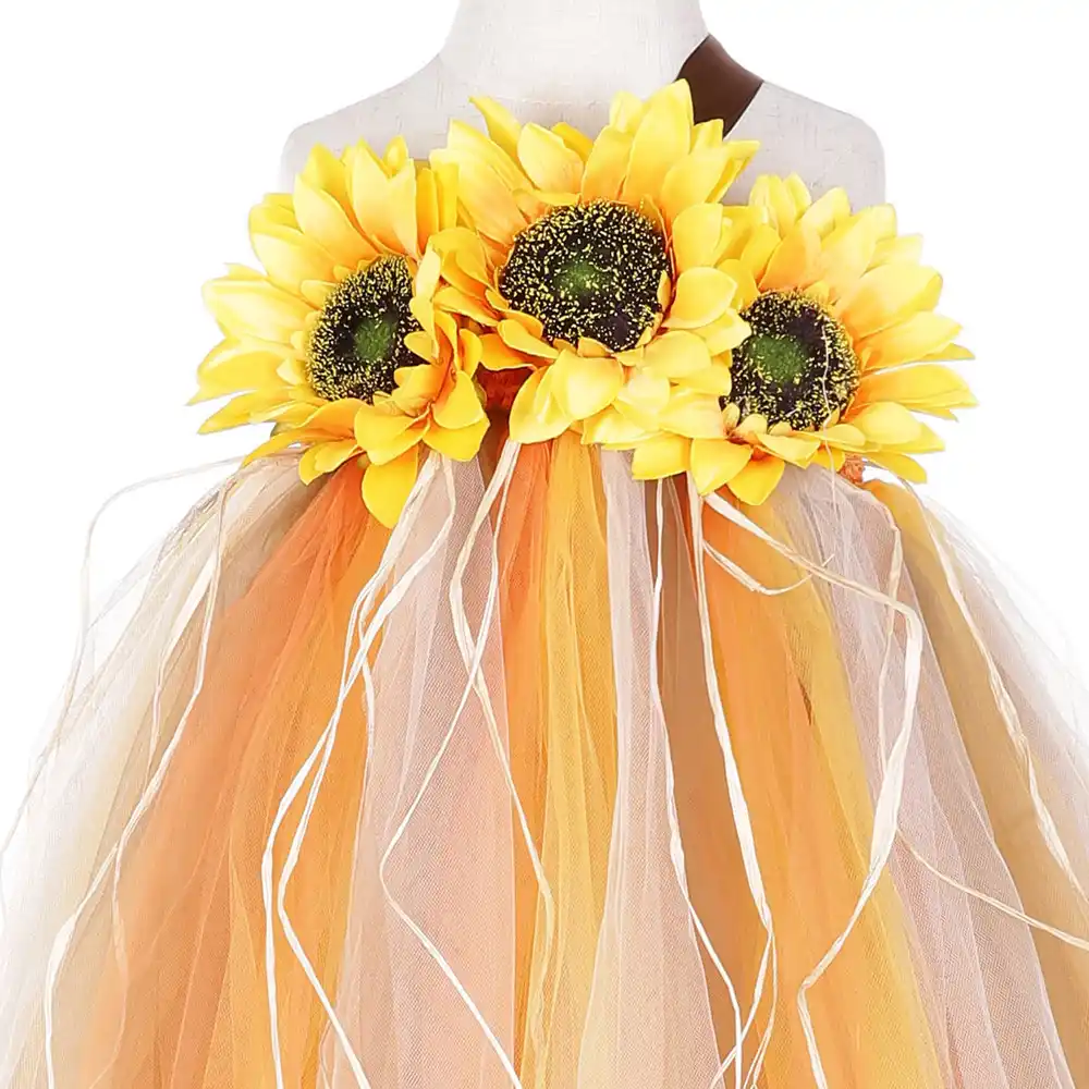 Disfraz De Espantapájaros De Halloween Para Niñas Vestido De Girasol Hasta El Tobillo Calabaza Acción De Gracias Carnaval Tutú Vestido De Baile Para