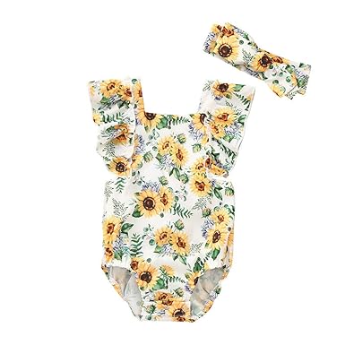 Mayogo Bebe Ropa Niña Verano Mono Girasol Estampado Volantes