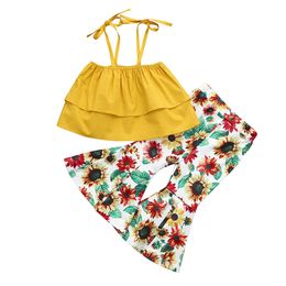Bebés Infantiles Princesa Ropa De Verano Bebé Recién Nacido Girasol T Shirt Tops Tirantes Shorts 2 Unids Ropa Trajes 3 18 M