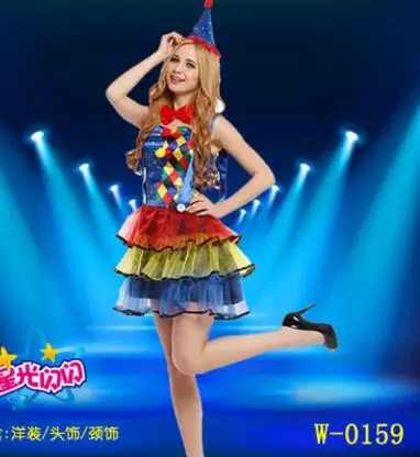 Compre S Xl Mulher Halloween Palhaço De Circo Trajes Feminino Droll Joker Cosplay Carnaval Desfile De Desfile De Palco Boate Bar Vestido De Festa De