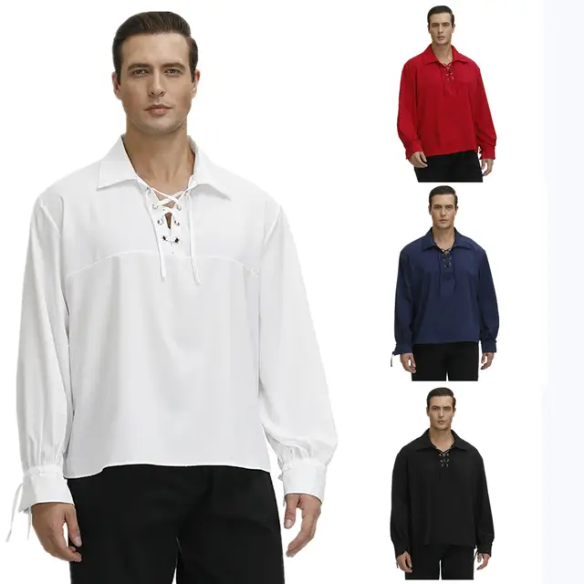 729 Camiseta Pirata Para Hombre Renacimiento Medieval Blanco Camiseta Pirata Disfraz Camisa Hinchada In Disfraces De Películas Y Tv From Novedad Y