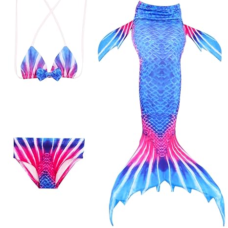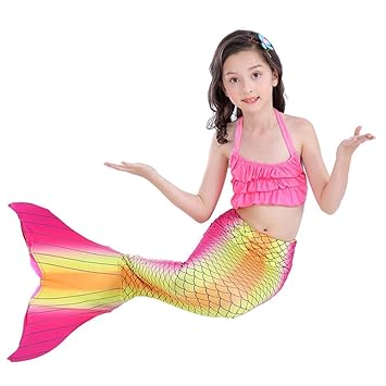 Qincos 3pcs Bikini Sirena Traje De Baño Disfraz De Sirena Princesa Mermaid Swimsuit Para Niñas