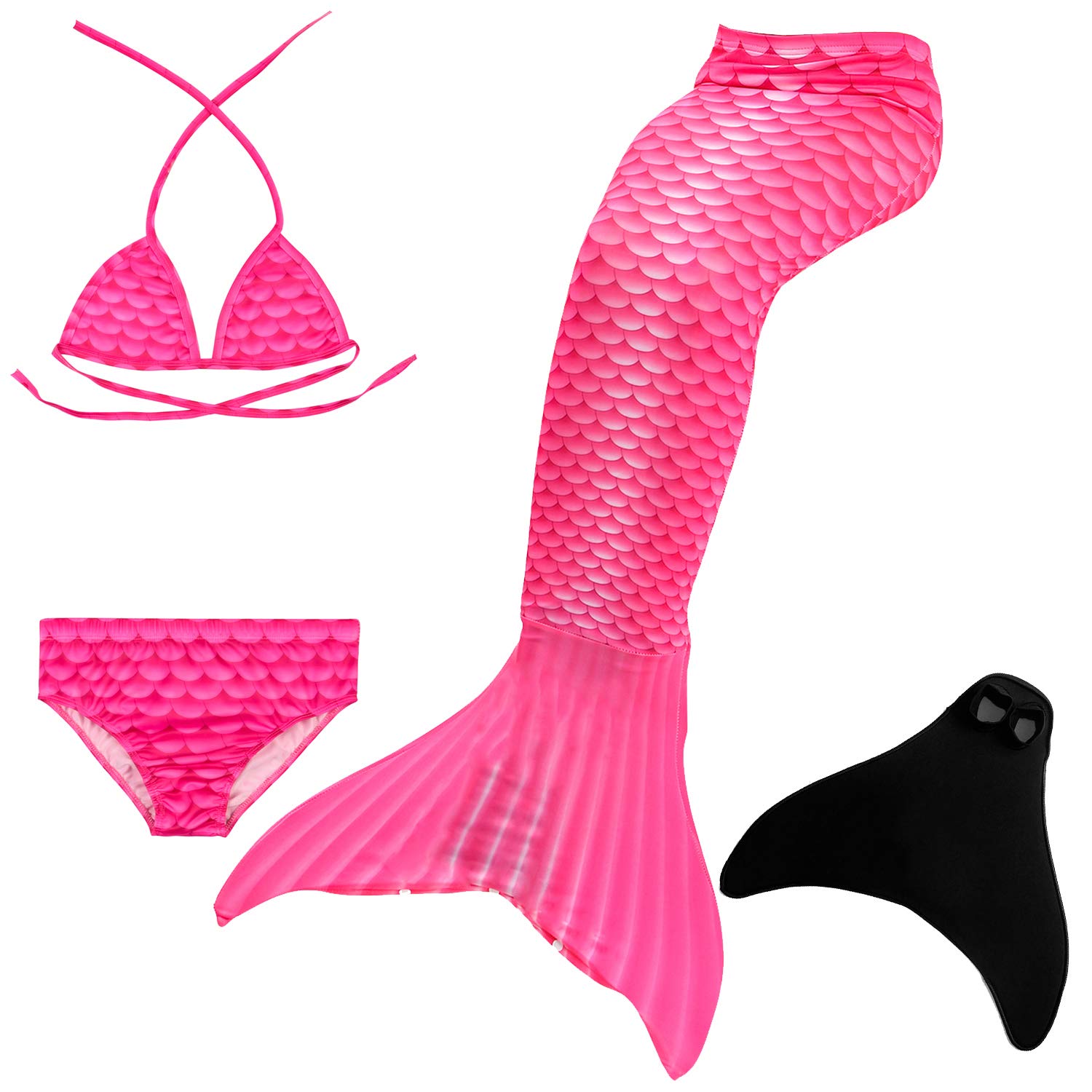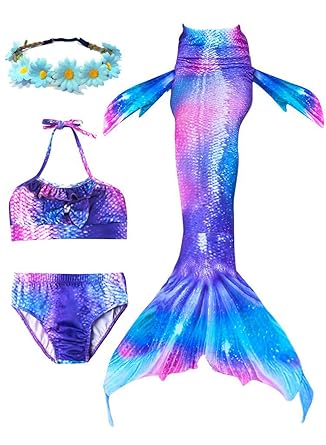 Cola De Sirena Para Natación Traje De Baño 4pcs Mermaid Bikini Con Monofín Establece Para Niña Disfraz De Sirena Princesa Cosplay Conjuntos