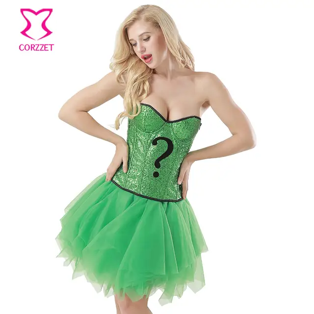 Sexy Verde Lentejuelas Pregunta Mark Patrón Corsé Vestido Vintage Burlesco Cosplay Carnaval Corsé Falda Trajes De Mago Disfraces
