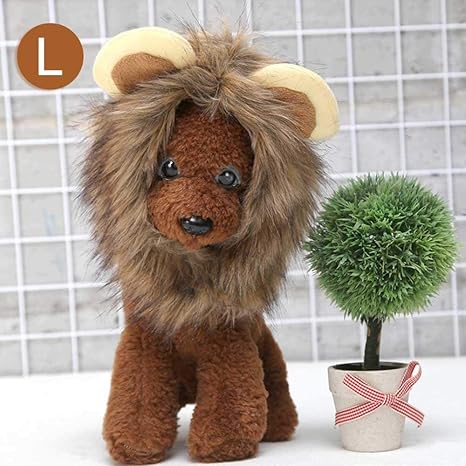 Fittek Facilla Sombrero Peluca Disfraz León Pelo Marrón Cosplay Para Gatos Perrito H