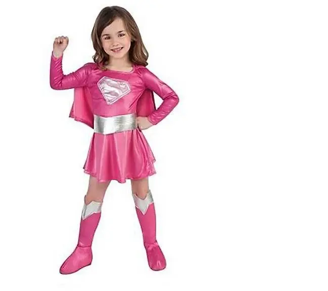 118 11 De Descuentocagiplay Caliente Niños Rosa Superman Chica Vestido De Halloween Cosplay Fiesta Super Hero Supergirl Traje Con Cabo Botas