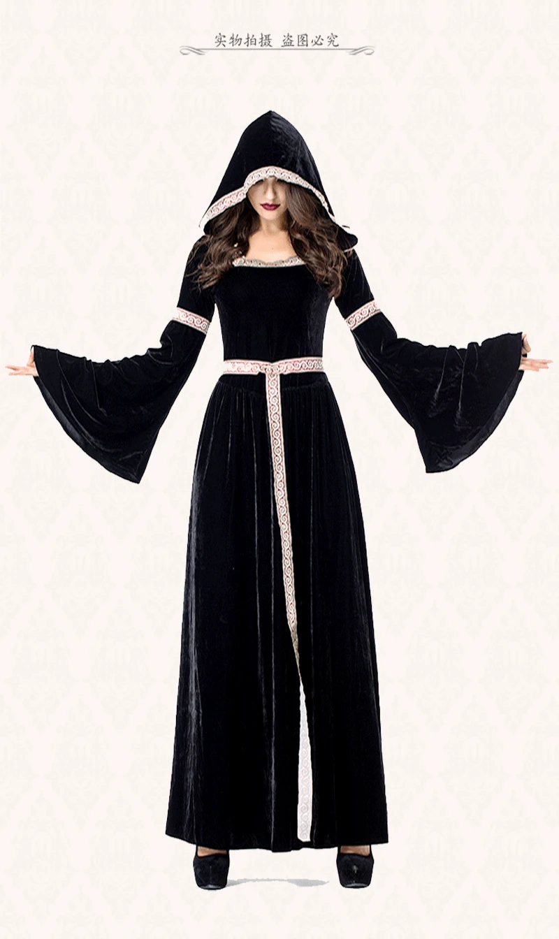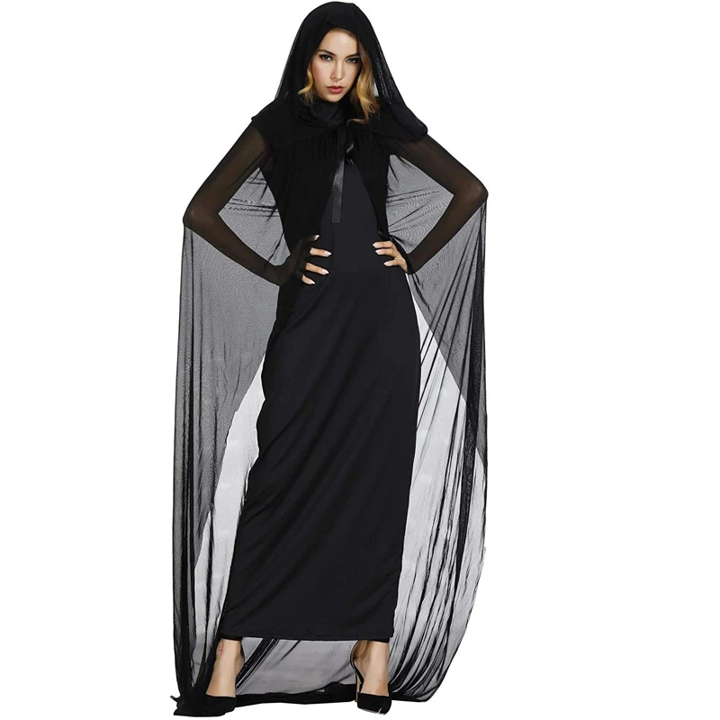 3379 20 De Descuentomujeres Adultas Gótico Halloween Morticia Addams Fantasma Bruja Disfraz Horror Piso Negro Encaje Vestido Bata Ropa Para