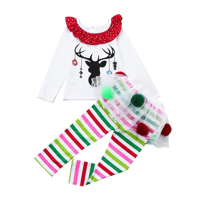Ropa Navidad Niña Reno Camiseta Tops Tutu Pantalones De