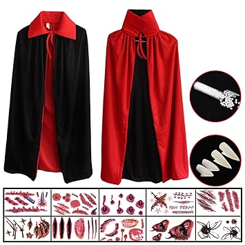Beetest Vampiro Dracula Capa Cabo Para Hombres Hombre Halloween Disfraces 140cm Largo Negro Rojo Reversible
