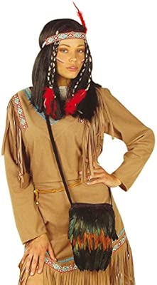 Detalles De Indio Coletas Peluca Negra Con Plumas Pocahontas Disfraz Traje Pelo