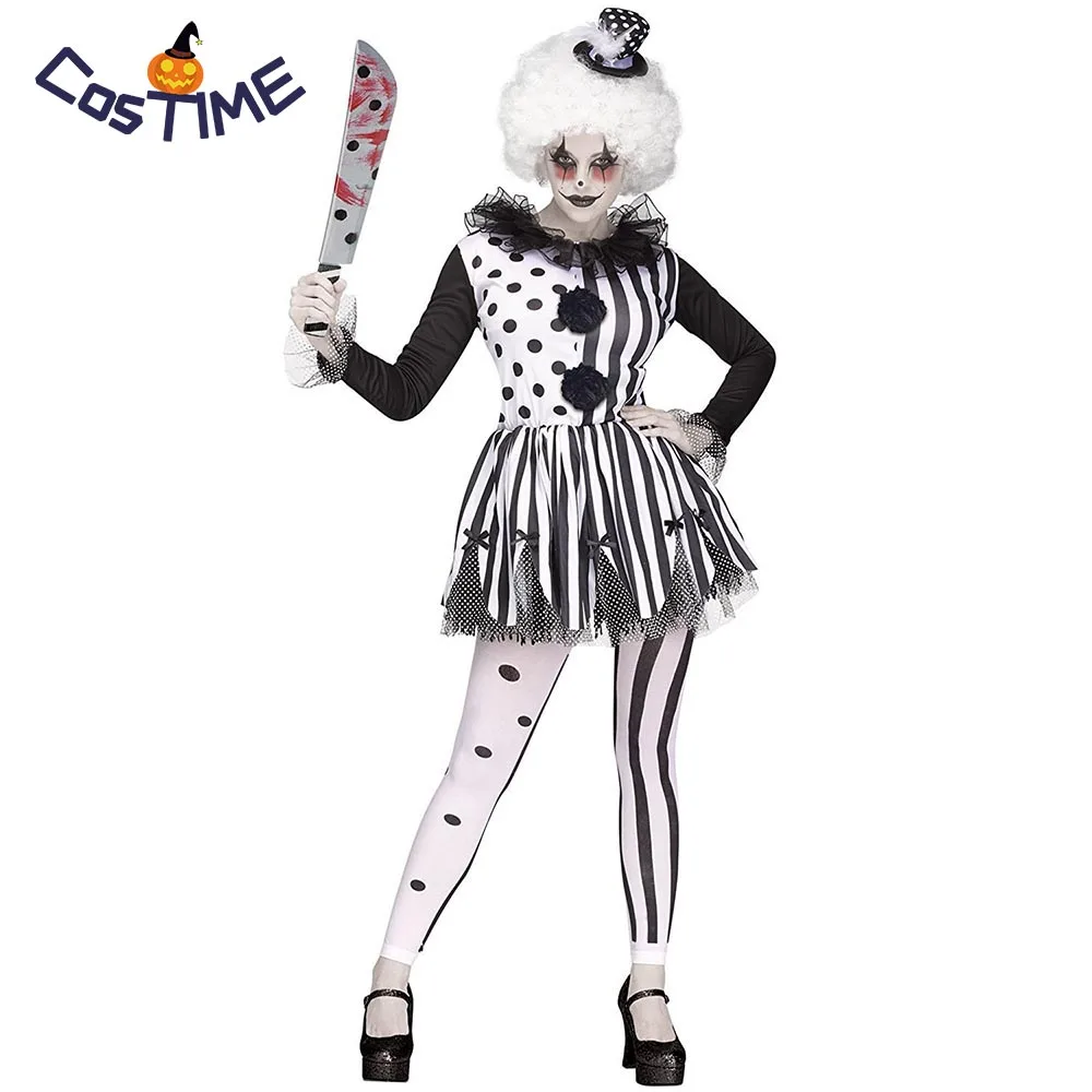 R11598 30 De Descontomulher Assassino Palhaço Traje Senhoras Preto Branco Multi Camadas Tutu Vestido Adulto Mal Assustador Coringa Menina