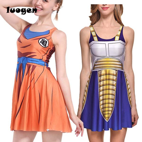 Compre Costumes Ostumes Acessórios Cosplay Sexy Girl Vestido De Verão Dragon Ball Cosplay Son Goku Vegeta Reversível Mangas Skater Mulheres Pleate