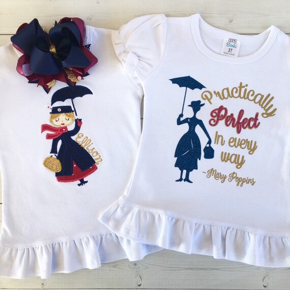 Mary Poppins Outfit Girls Disney Outfit Disney Shirt For Girls Glitter Mary Poppins Shirt Custom Disney Outfit Toddler Disney Outfit