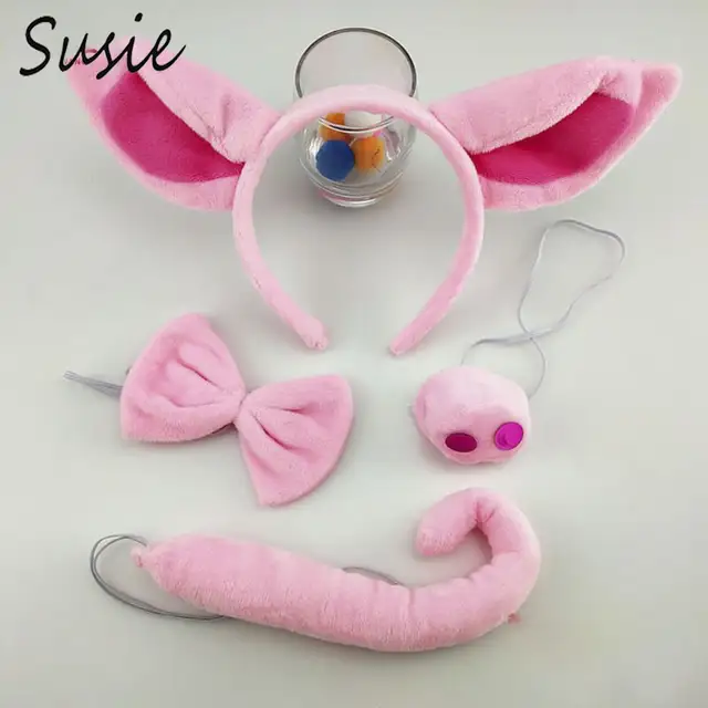 048 26 De Descuentosuper Suave Cerdo Oreja Diadema Nariz Cola Halloween Animal Tocado Vestido Up Accesorios Rosa Cerdito Cabeza Hoop Set Cosplay