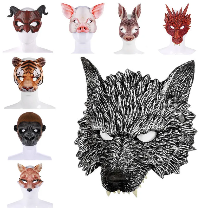 157 28 De Descuentomáscara De Animal De Halloween Tigre Lobo Conejo Zorro Cosplay Accesorios Fiesta Disfraz Bola Panda Dragón Cerdo Bruja Media
