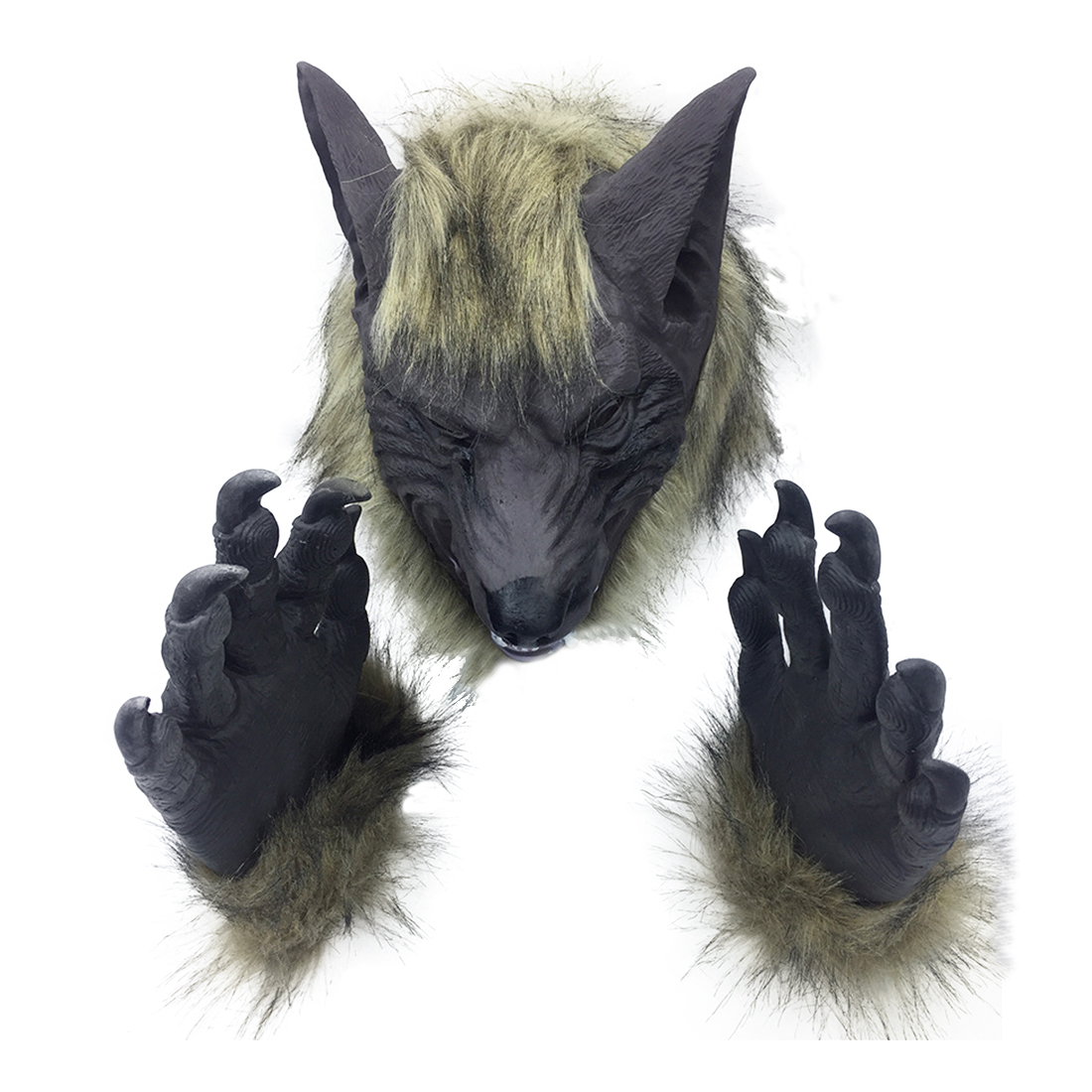 Máscara De Látex De Lobo De Cara Completa Y Garras De Lobo