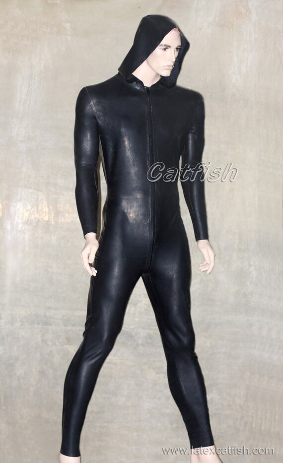 Con Capucha Sexy Catsuit Hombre Latex Disfraz Mono Negro