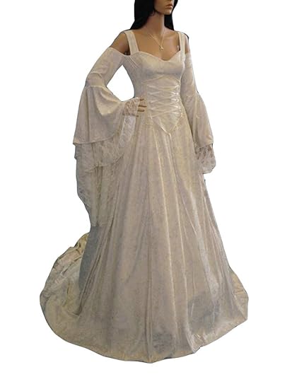 Guiran Disfraz Medieval Mujer Largo Vestidos De Novia Vintage Blanco 4xl