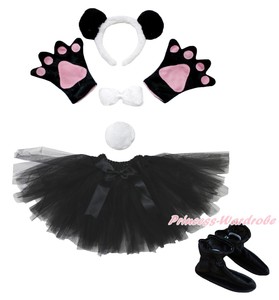 Details About Panda Bear Headband Bow Tail Paw Shoes Gauze Skirt 6pc Kids School Party Costume