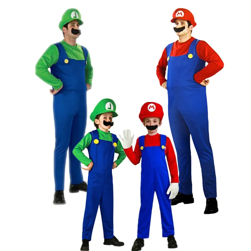 Niños Familia Funy Cosplay Disfraz Niño Niña Super Mario Luigi Brothers Plomero Disfraces De Fiesta Disfraz Lindo Niños Disfraz