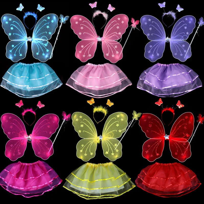 246 40 De Descuento4 Uds Niños Niñas Disfraz De Hada Princesa Conjuntos Coloridos Etapa Desgaste Mariposa Alas Diadema Faldas Tutú In