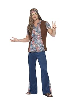 Smiffys Smiffys 45517l Disfraz De Chico Hippy Con Parte De Arriba Pantalón Pañuelo Para Para Color Azul L 91 97 Cm 45517l