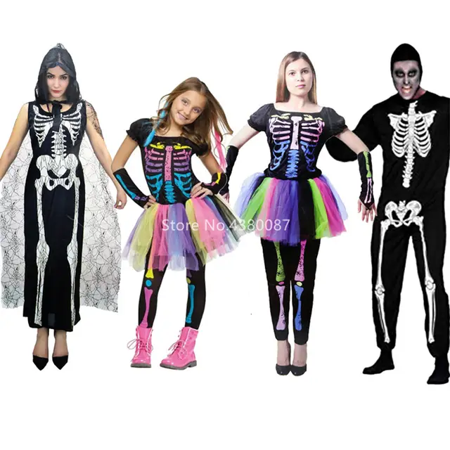 Esqueleto Arcoíris Miedo Cosplay Niños Adultos Halloween Vestido Mujeres Bebé Niña Horror Disfraz Bruja Hombres Diablo Disfraz Carnaval Fiesta