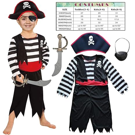 Sincere Party Disfraz De Niño Pirata Infantil Con Sombrero Espada Y Parche 4 6 Años