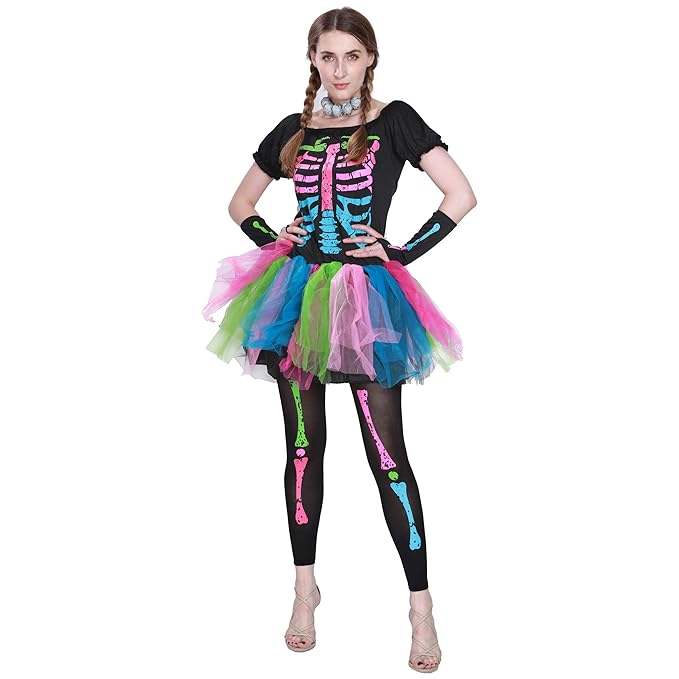 Eraspooky Mujer Miedoso Punky Huesos Disfraz Esqueleto Vistoso Tutu Vestir Halloween Fiesta Lujoso Vestir