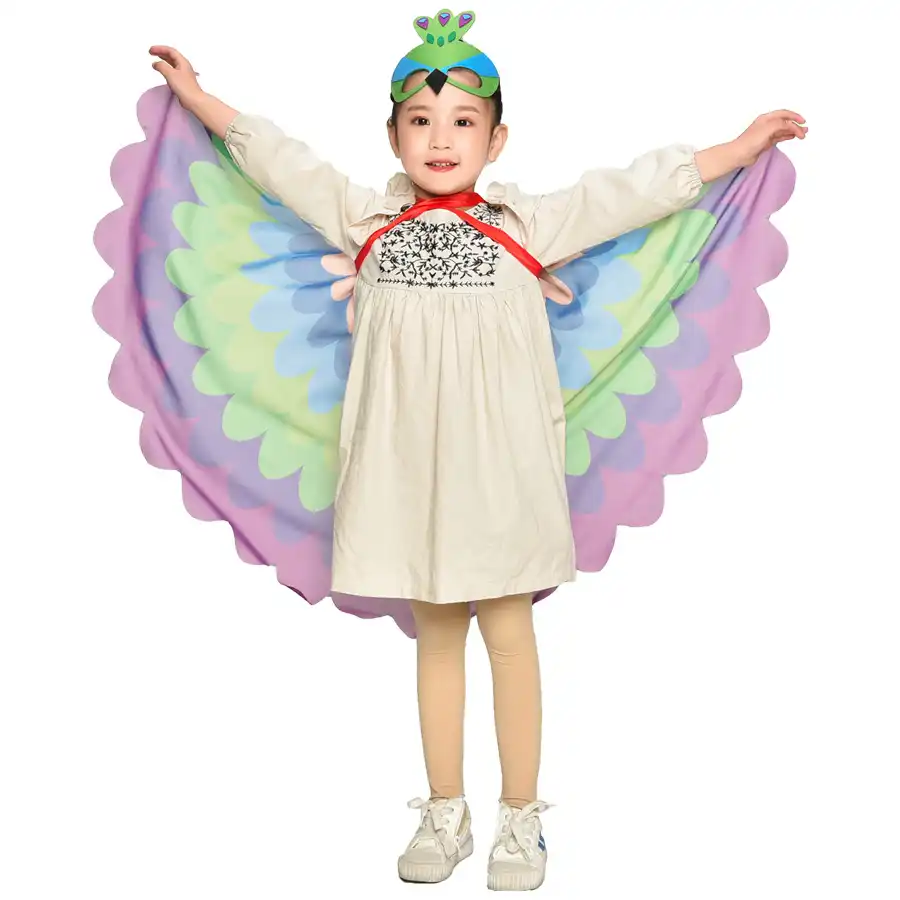 Especial 12070 Cm Niño Traje De Pavo Real Chales Niño Pájaro Disfraz Regalos Juguetes De Cumpleaños Tema Animal Alas De Mosca Traje Favor