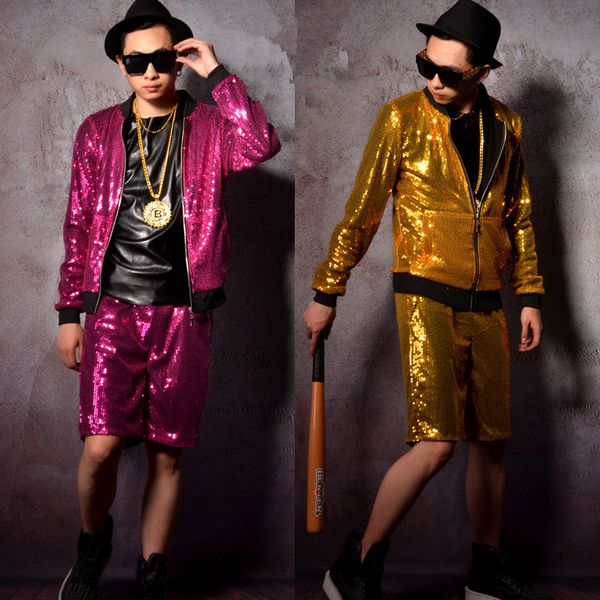 Compre Chaqueta Pantalones Traje Masculino Discoteca Bar Dj Ds Disfraces Rosa Amarilla Lentejuelas Rojas Chaqueta Pantalones Conjuntos Cantante