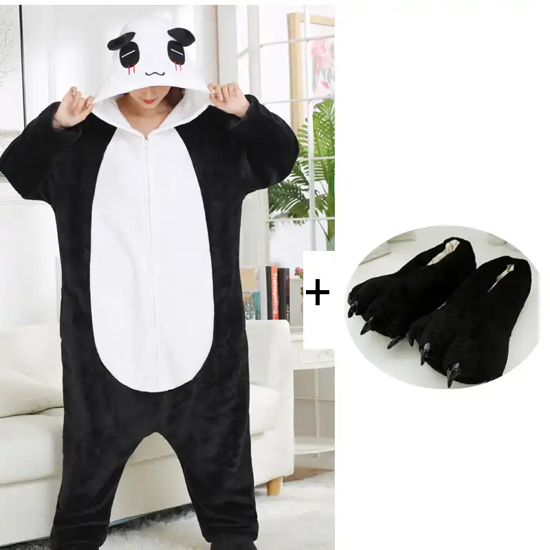 1699 Adulto Pijamas Kigurumi Oso Panda Pijamas De Una Pieza Franela Negro Blanco Cosplay Por Hombre Y Mujer Ropa De Noche De Los Animales