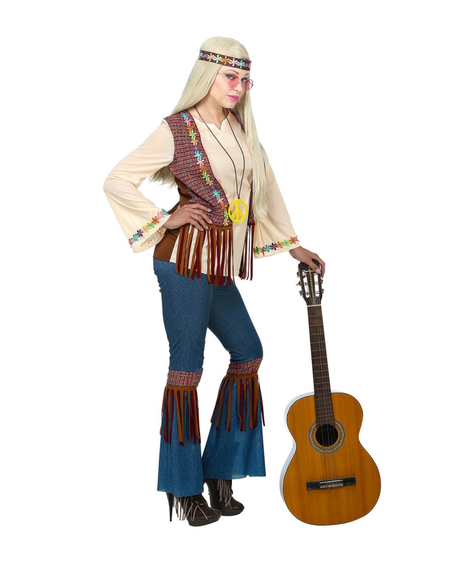 Disfraz De Hippie Mujer Chaleco Marron