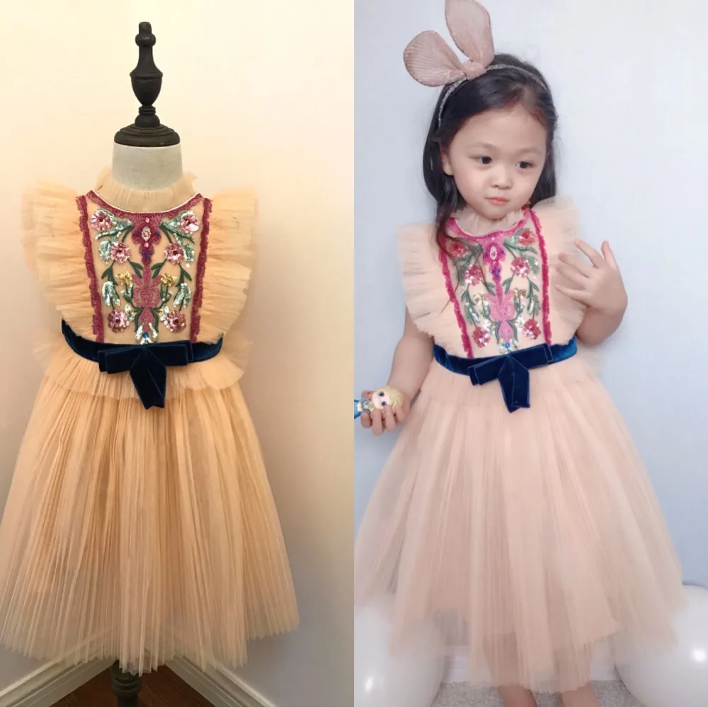 Preventa Verano Bebé Niñas Vestido Lentejuelas Patrón Floral Sin Mangas Moda Niños Ropa Boutique