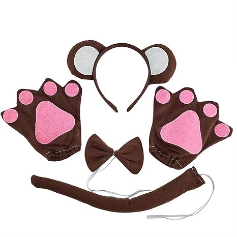 Paquete De 5 Orejas De Mono Animal Diadema Arco Cola Tutú