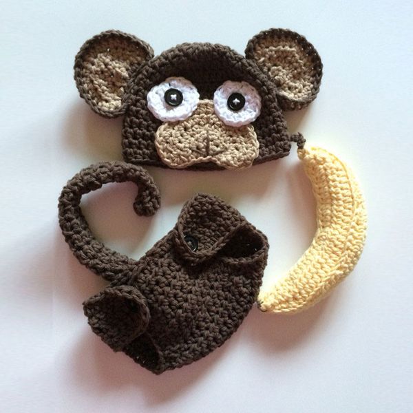 Compre Novedad Disfraz De Mono Recién Nacido Crochet Tejido A Mano Baby Boy Girl Animal Hat Con Orejas Cubierta De Pañal Banana Set Infant Toddler